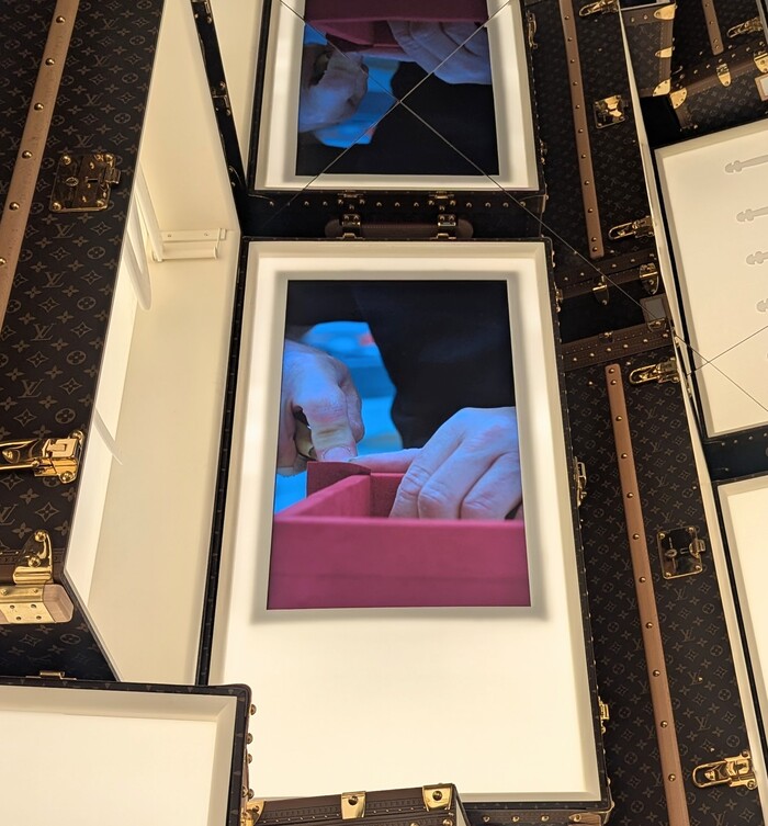 トランクの中に設けられたスクリーンには、ルイ・ヴィトンの職人がどんな仕事をしているのかが紹介されていました。