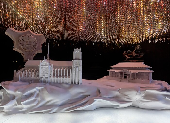 文化遺産保護における国際連携を「人類愛」として昇華したというこのセクションは、フランスと日本の遺産を融合した展示物がありました。